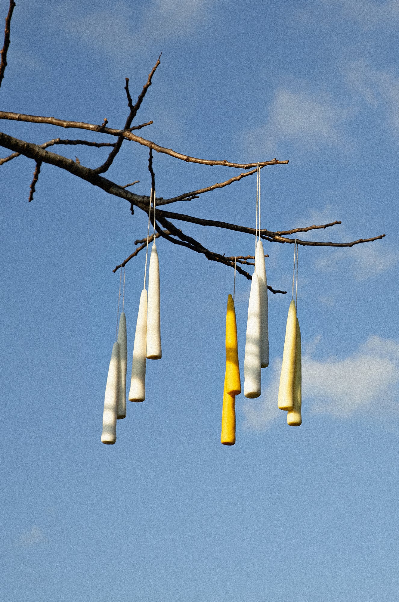 As velas de imersão são feitas pelo método mais antigo de fazer velas. Ele consiste em submergir rapidamente o pavio em um recipiente de cera quente e deixar que se solidifique e voltar a submergi-la até ficar com a espessura almejada. Como são seguradas a mão, o pavio serve para segurá-las durante a imersão. Esse método é ensinado na nossa oficina "Mãos que criam".